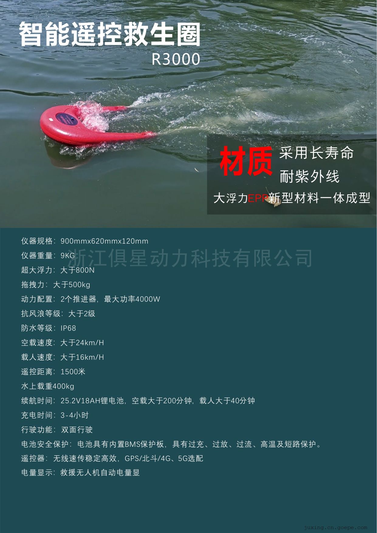 R3000 型水域救援机器人是一种自带动力系统的可遥控救生艇,救生艇